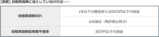 別名「強制保険」とも言われる自賠責保険。何らかの事情で自賠責保険に加入しないまま一般道を走行した場合、1年以下の懲役または50万円以下の罰金など、重い罰則を受けることになります。
