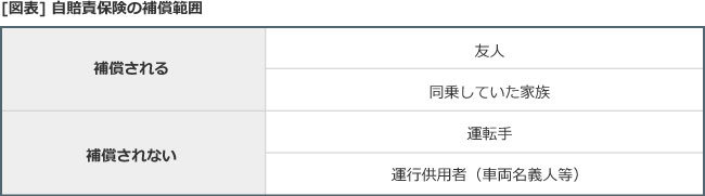 自賠責保険の補償範囲はやや複雑で、補償される人は「他人」と定義されています。この「他人」とは血縁以外の人を指すのではなく、「運転手」「運行供用者」以外を指しています。