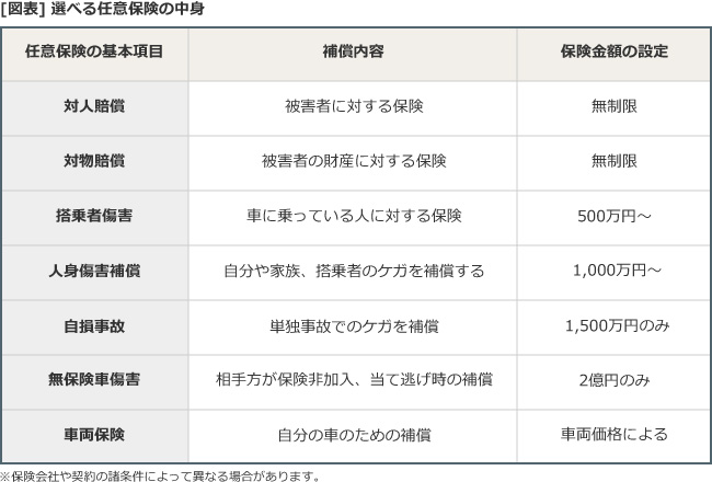任意保険は自分で加入条件を選択できる