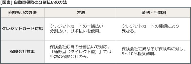 先ほど紹介したクレジットカードでの支払い。通販型(ダイレクト型)で見積もりをして、保険料は安くなったけれど、支払いは一括払いのみしかなく大変……そんな人におすすめの支払方法があります。